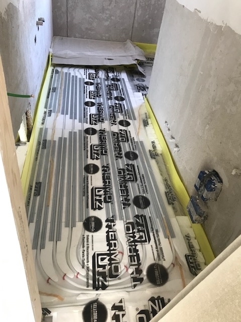 Installazione di riscaldamento a pavimento, sistema a secco, in un appartamento a Casalecchio di Reno (Bologna).
